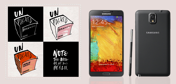 2013년 갤럭시 언팩 에피소드 2에서는 노트로 필기된 듯한 초대장으로 갤럭시 노트3를