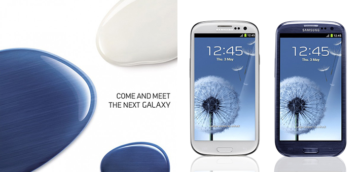 2012년 삼성 갤럭시 언팩에서의 조약돌 디자인의 갤럭시 S3,