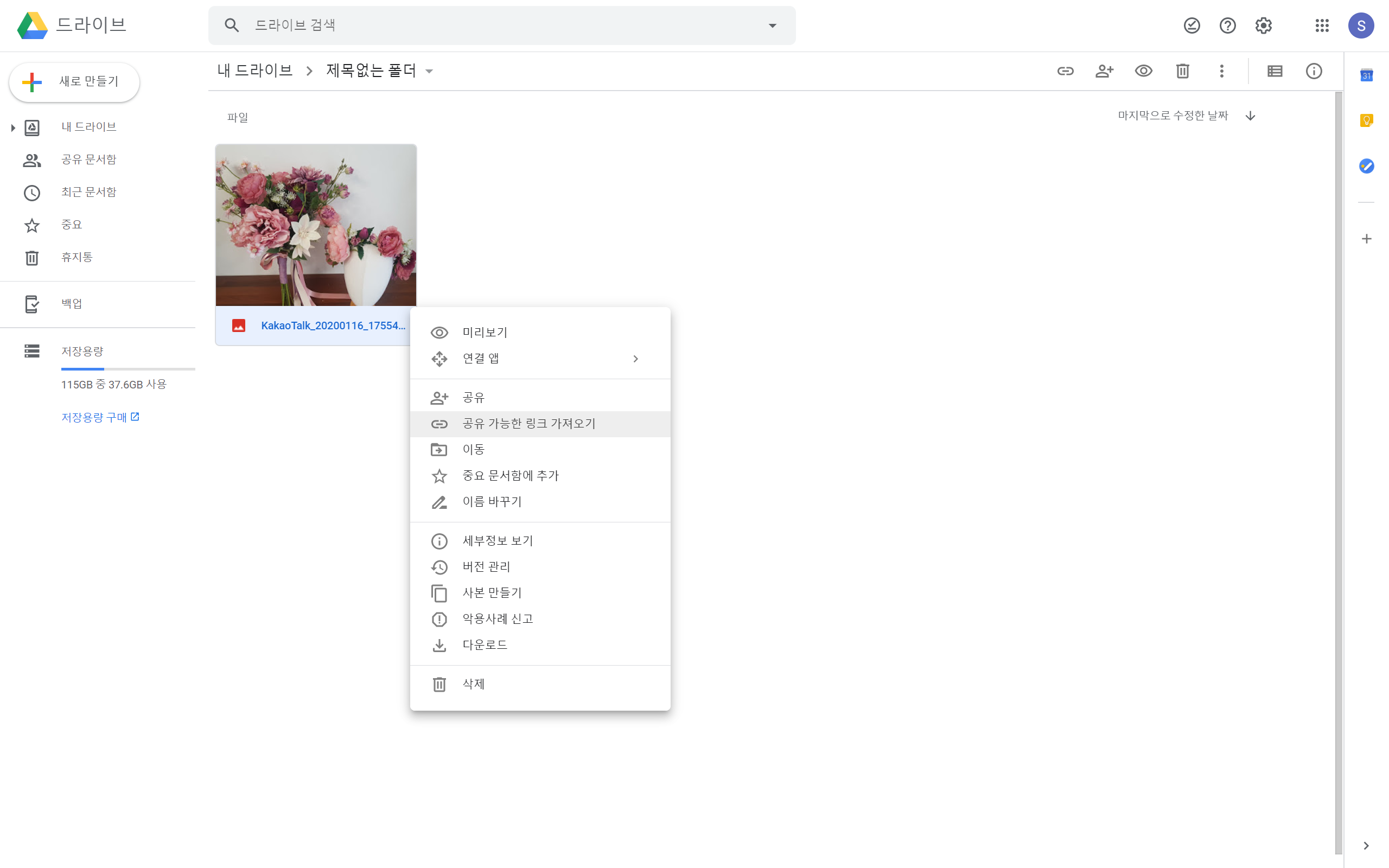 구글 드라이브에 업로드된 이미지는