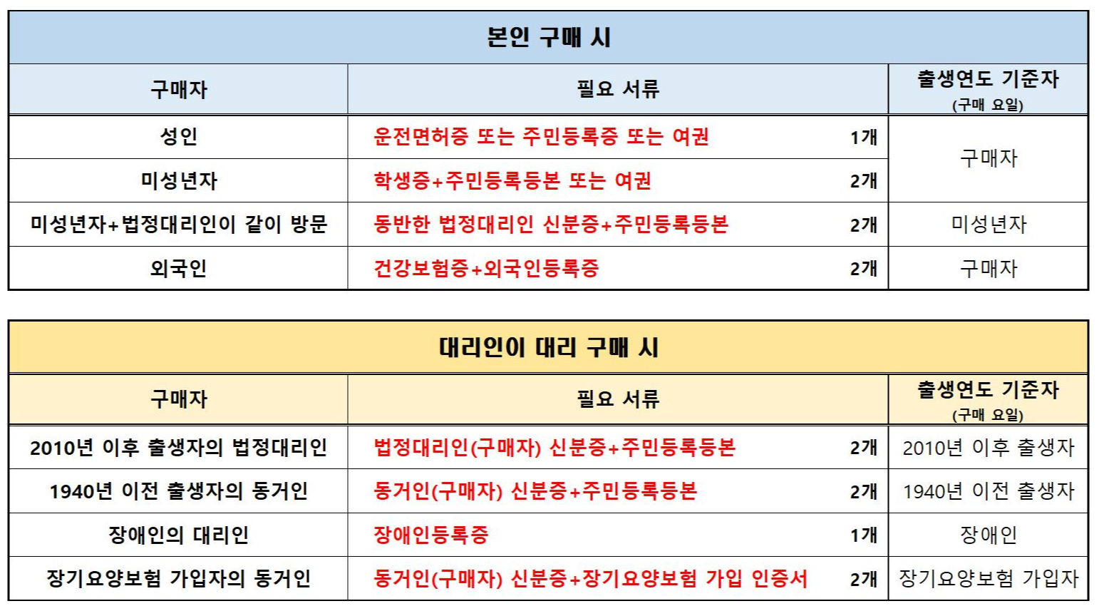 출생연도와 관계없이 토요일과 일요일에 구매하실 수 있습니다.