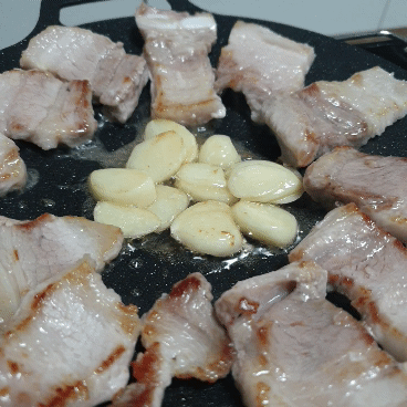 테스트로 집에 있는 구이바다에 아리수 캠핑 그리들을 올려 삼겹살을 구워봤습니다.