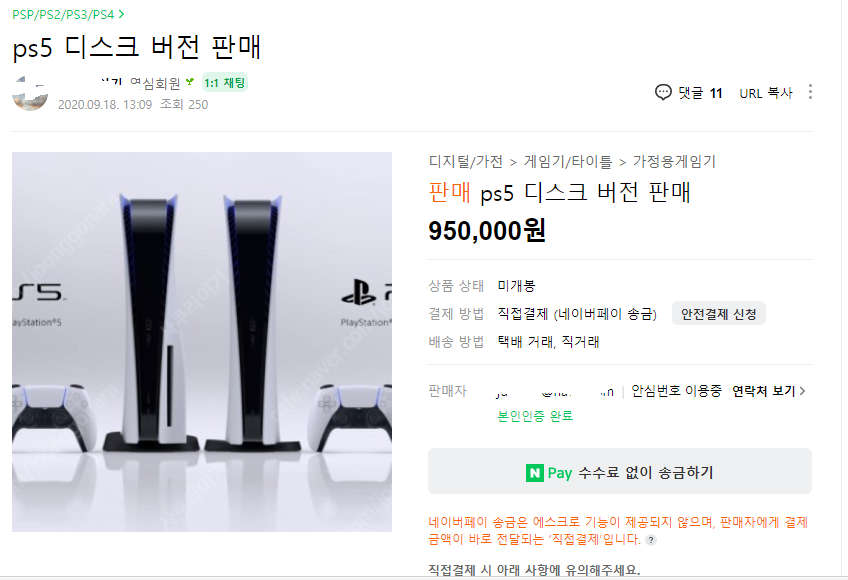 이번 플스5도 되팔렘들이 어마 무시하다고 합니다. 사전 예약 품절하자마자 중고거래 사이트에 거의 2배 가격인 100만원에 판매글이 올라오는 등... 정말 되팔렘들은 얼굴에 철판이라도 깔았는지...